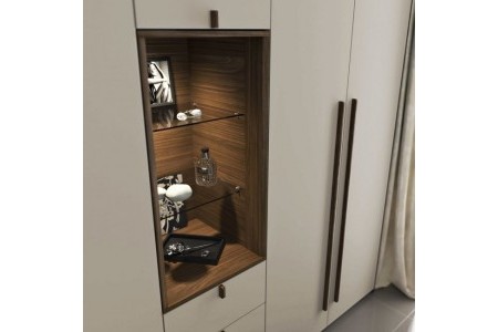 Spavaća soba Arabeska može se prilagoditi različitim prostornim okvirima i stilovima. Kombinacije jednostavnih ploha, modernih kosina i ugodnih oblina osvježavajuće su svijetle, opušteno prirodne ili glamurozno „šik“. Arabeska rastvara krila mašti i kreativnosti. Širok izbor boja, materijala i praktičnih mogućnosti nudi beskonačnost kreiranja po vašem osobnom ukusu. Prostranost ormara omogućuje potpunu prilagodljivost prilikom spremanja i odlaganja garderobe i drugih predmeta, a moderno oblikovani kreveti otpratit će vas u ugodan san. Spavaća soba Arabeska izrađena je od ekoloških materijala koji će biti prikladni i za vas. Dekor s motivom oraha koji je u trendu dopunjuju ručno obrađeni prirodni orah, topli metalni odsjaj i svilene lakirane površine.