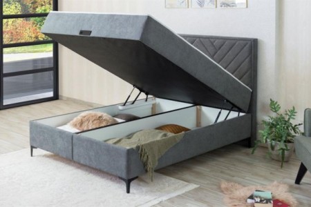 Tapecirani krevet s madracem i spremištem (na podizanje). Madrac je od džepićaste jezgre obložene pjenom. Visina s madracem (visina ležaja): 68cm, ukupna dužina kreveta: 209cm, dubina spremnika: 25cm