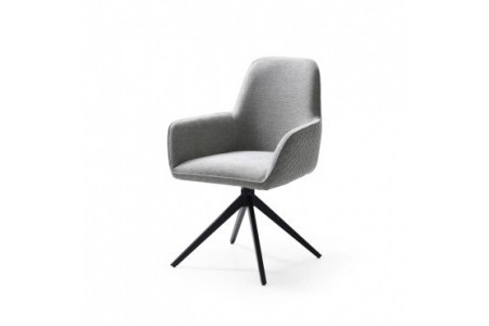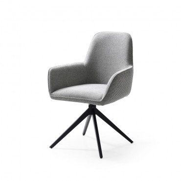 "Tapecirana blagovaonska stolica dostupna u sivoj boji. Cijela stolica, uključujući naslone za ruke, presvučena je mekom tkaninom. Vanjski dio stražnje strane i naslona za ruke prošiven je ukrasnim šavovima u šesterokutnom uzorku. Sjedalo je ispunjeno gustom pjenom za ugodnije sjedenje, a naslon je ispunjen pjenom manje gustine. Stolica se može okretati za 180°. Baza stolice izrađena je od metala i plastificirana u crno za bolju zaštitu. Maksimalna nosivost stolice je 120 kg. Boja: siva Dimenzija (cm): 62x64x89,5 Neto masa: 10,14 kg"