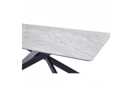 "Prekrasan blagovaonski stol koji kombinira moderan stil s klasičnim izgledom sivog mramora. Ploča stola debljine 12 mm izrađena je od sinteriranog kamena s prekrasnim mramornim uzorkom sive boje visokog sjaja. Sinterirani kamen izrađen je od kombinacije nekoliko prirodnih kamenova u različitim bojama, s nekoliko prednosti u odnosu na običnu keramiku. Čvršći je od monoblok keramičkih ploča i ne razbija se tako lako. Također je prirodno vodootporan, u usporedbi s prirodnim granitnim pločama, i ekološki prihvatljiviji od kemijski tretiranih kvarcnih ploča. Nosač stola izrađen je od MDF materijala. Noge, dizajna ""spyder"", izrađene su od metalnih cijevi dimenzija 30x80 mm, te su za bolju zaštitu plastificirane u crnu boju. Stol je dostupan u dvije različite veličine. Maksimalna nosivost stola je 120 kg. Boja: sivi mramor Dimenzije (cm): 160x90x75, 180x90x75 Netto masa: 57.90, 62.10 kg"