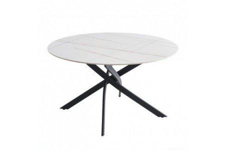 "Okrugli blagovaonski stol koji će vas impresionirati svojim modernim dizajnom. Ploča stola izrađena je od sinteriranog kamena s prekrasnim uzorkom bijelog mramora sa zlatnim žilama. Sinterirani kamen izrađen je od kombinacije nekoliko prirodnih kamenova u različitim bojama, s nekoliko prednosti u odnosu na običnu keramiku. Čvršći je od monoblok keramičkih ploča i ne razbija se tako lako. Prirodno je vodootporan u usporedbi s prirodnim granitnim pločama i ekološki prihvatljiviji od kemijski tretiranih kvarcnih ploča. Ploča stola ima promjer 133 cm i debljinu 1,2 cm. Postolje u elegantnom dizajnu, koje stolu daje moderan štih, izrađeno je od metalnih cijevi i plastificirano u crnoj boji. Maks. nosivost stola je 120 kg. Boja: bijeli mramor + zlato Dimenzije (cm): 133x76 Netto masa: 54,00 kg"