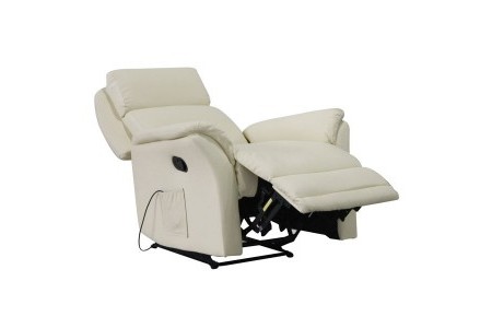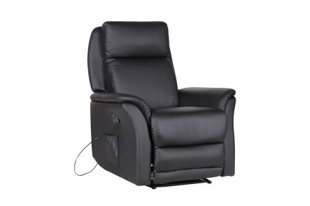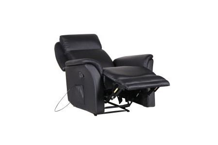 Udobna vibracijska fotelja s relax funkcijom koja se aktivira naginjanjem prema natrag I odgurivanjem rukama od rukonaslona. Pomoću daljinskog upravljača upravlja se vibracijskom masažom. Izrađena je od umjetne kože