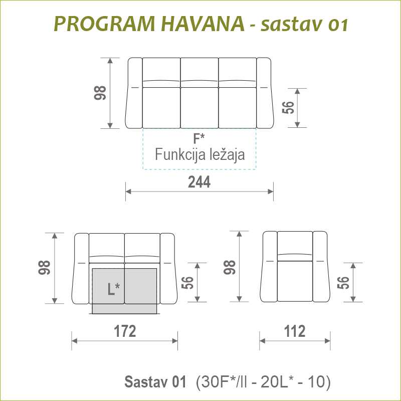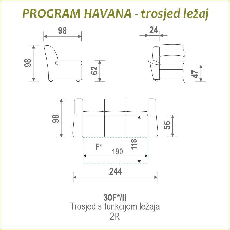 Program Havana - 30F*/II trosjed 2R s funkcijom ležaja