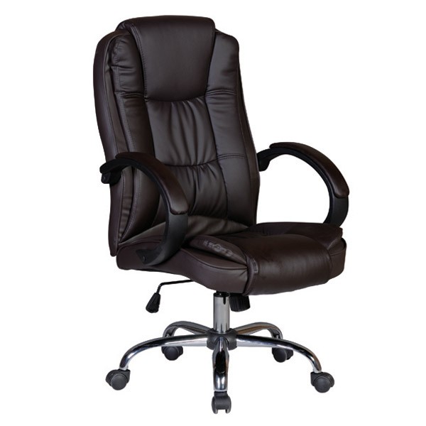 Uredski stolac od umjetne kože u crnoj boji. Uključeni su rukonasloni koji su obloženi s gornje strane. Postolje je metalno. Vrtljiv je i podesiv po visini. Najveća nosivost je 120kg.